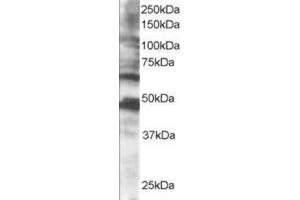 Peptide ELISA: 1/128000. Western Blot: 0.5-2.0 μg/mL. Approx 65-70 kDa band observed in Human Brain lysates(predicted MW of 60 kDa according to NP_085097). Please note this band was always accompanied by a slightly stonger band at approx 40 kDaand further both bands could be blocked by incubation with the immunising peptide. Other applications not tested. Optimal dilutions are dependent on conditions and should be determined by the user.