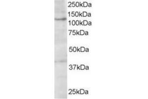 Peptide ELISA: > 1/32,000. Western Blot: 1-3 μg/mL. Detects a band of Approx 110 kDa in A431 cell lysate(Predicted Molecular Weight: 114 kDa).