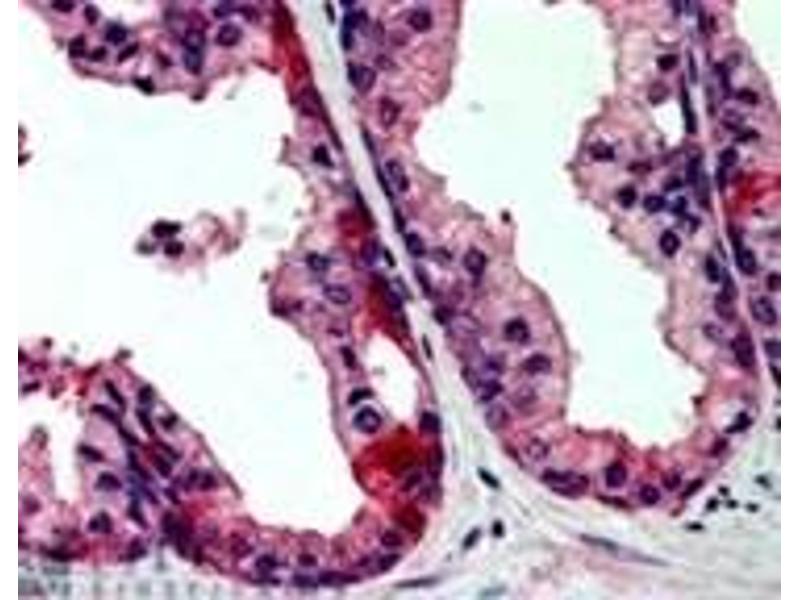Peptide ELISA: 1/32000. Western blot: 0.3 - 1.0 μg/mL. Immunohistochemistry on paraffin sections: 2 - 3 μg/mL. Other applications not tested. Optimal dilutions are dependent on conditions and should be determined by the user.