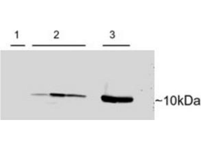 Peptide ELISA: 1/32000. Western Blot: 0.1-0.3 μg/mL. Approx 12 kDa band observed in Human Brain lysates (calculated MW of 12.2 kDa accordingto NP_002845.1). Approx 10-12 kDa band observed in rat skeletal muscle and in rat heart cells transfectedwith human PVALB, but not in untransfected rat heart cells. (1) Other applications not tested. Optimal dilutions are dependent on conditions and should be determined by the user.