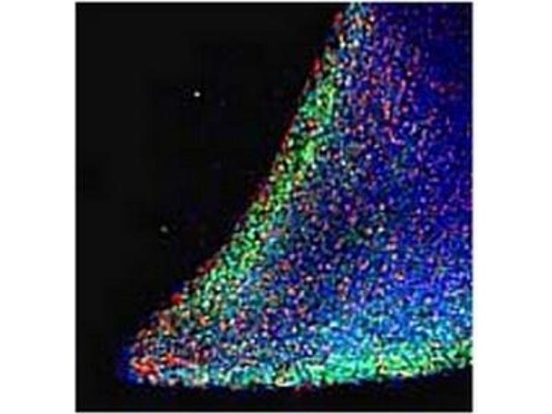 Nanog is a newly identified homeodomain-bearing transcriptional factor. Nanog expression is specific to early embryos and pluripotential stem cells including mouse and human embryonic stem (ES) and embryonic germ (EG) cells. It is a key molecule involved in the signaling pathway for maintaining the capacity for self-renewal and pluripotency, bypassing regulation by the STAT3 pathway. Nanog mRNA is present in pluripotent mouse and human cell lines, and absent from differentiated cells. Nanog-deficient ES cells lose pluripotency and differentiate into extraembryonic endoderm lineage. Thus it is one of the molecular markers suitable for recognizing the undifferentiated state of stem cells in the mouse and human. NANOG is a new marker for testicular carcinoma in situ and germ cell tumors.Synonyms: Homeobox protein NANOG