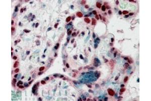Peptide ELISA: 1/32000. Western Blot: 0.3 - 1.0 μg/mL. Immunohistochemistry on paraffin sections: 2 - 3 μg/mL. Other applications not tested. Optimal dilutions are dependent on conditions and should be determined by the user.
