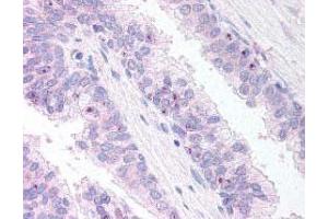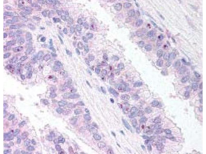 Peptide ELISA: 1/16000. Western Blot: 1 μg/mL. Immunohistochemistry on paraffin sections: 10-20 μg/mL. Other applications not tested. Optimal dilutions are dependent on conditions and should be determined by the user.