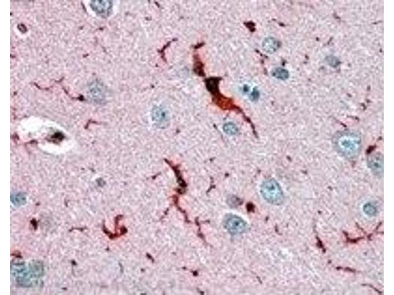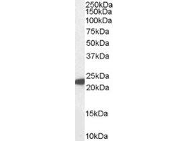 Peptide ELISA: Detection Limit: 1/32000. Western blot: 1-3 μg/mL. Approx 22 kDa band observed in Human Liver and Kidney lysates(calculated MW of 22.2 kDa according to NP_000572.2). Immunohistochemistry: 3.5 μg/mL. In paraffin embedded Human Cerebral Cortex shows staining of microglia. Other applications not tested. Optimal dilutions are dependent on conditions and should be determined by the user.