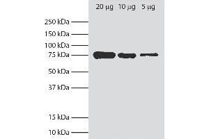 The immunoglobulin heavy chain binding protein BiP (Binding Protein) is a member of the hsp70 family of heat shock proteins, and is identical to the glucose regulated protein grp78. While BiP was originally described for its function in B cells, it is now known to be distributed in a variety of tissues, if not ubiquitous. The highly conserved hsp 70 proteins have an essential physiological role in stress responses and as 'molecular chaperones' which are responsible for a variety of functions such as protein transport, prevention of protein toxicity and direction of protein folding. With regard to its immunological role, BiP is a component of the endoplasmic reticulum and binds free intracellular heavy chains in nonsecreting pre-B cell lines ( µ +,L - ) or incompletely assembled Ig precursors in H + L + secreting hybridomas and myelomas. In the absence of light chain synthesis, heavy chains remain associated with BiP and are not secreted. BiP is an ATP binding protein and the dissociation of the BiP-heavy chain complex is probably driven by the ATPase activity attributed to BiP.