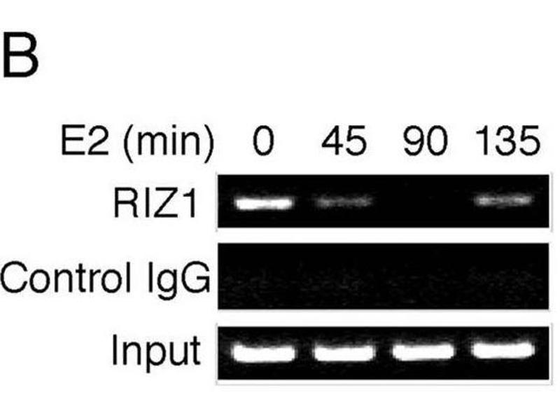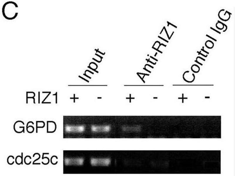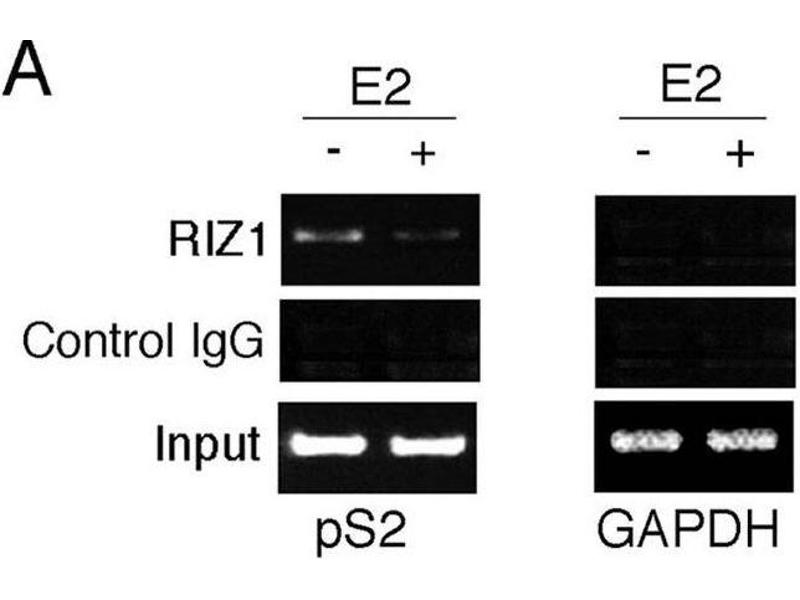 Purified recombinant GST fusion protein encoding aa 1-347 of human RIZ1. This antibody is specific for RIZ1, it does not recognize the isoform beta (RIZ2).