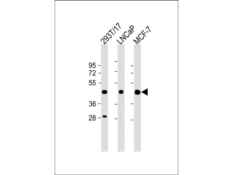This PRMT6 antibody is generated from rabbits immunized with a KLH conjugated synthetic peptide between 19-48 amino acids from the N-terminal region of human PRMT6.