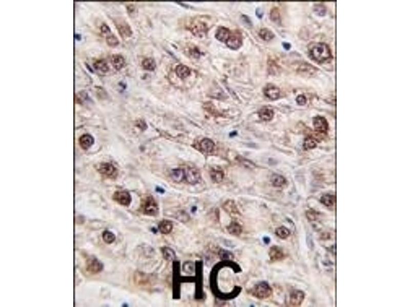 This JMJD4 antibody is generated from rabbits immunized with a KLH conjugated synthetic peptide between 423-455 amino acids from the C-terminal region of human JMJD4.