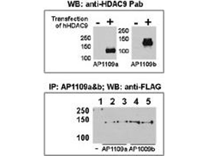 This HDAC9 antibody is generated from rabbits immunized with a KLH conjugated synthetic peptide between 503-533 amino acids from the C-terminal region of human HDAC9.