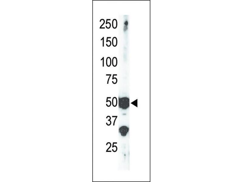 This antibody is purified through a protein A column, followed by peptide affinity purification.