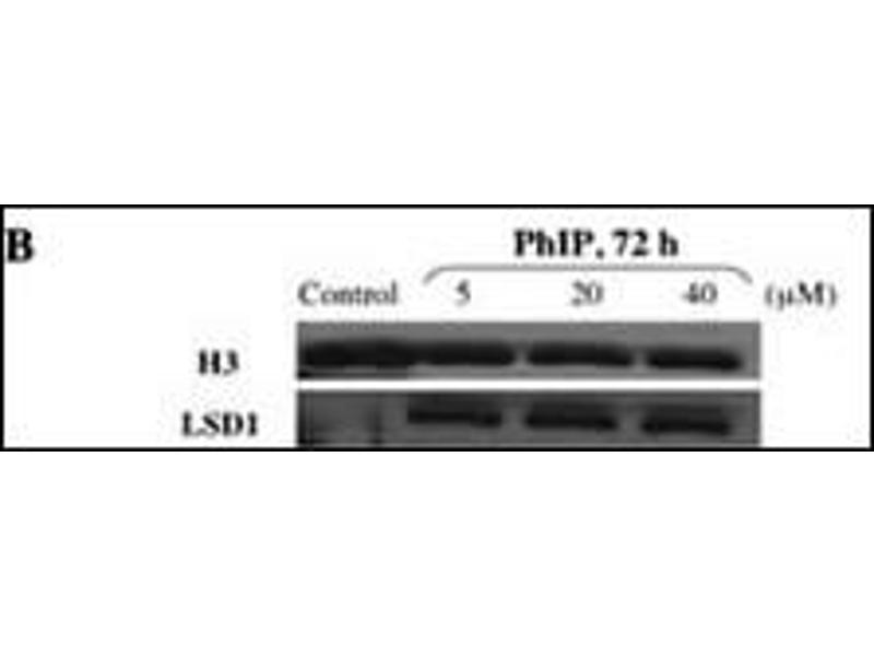 This LSD1 antibody is generated from rabbits immunized with a KLH conjugated synthetic peptide between 819-852 amino acids from the C-terminal region of human LSD1.