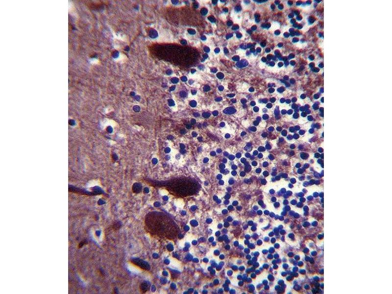 This UCHL1 antibody is generated from rabbits immunized with a KLH conjugated synthetic peptide between 187-214 amino acids from the C-terminal region of human UCHL1.