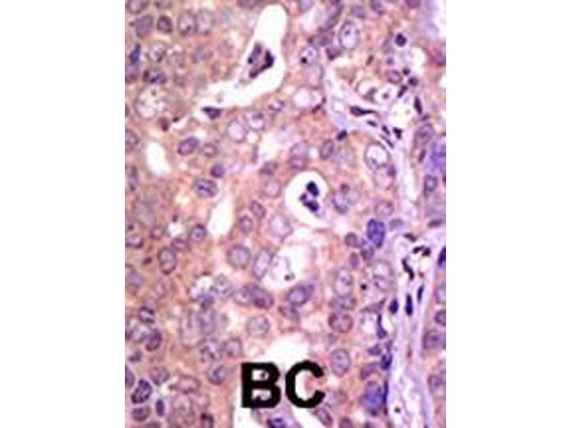 This USP1 antibody is generated from rabbits immunized with a KLH conjugated synthetic peptide between 607-637 amino acids from the C-terminal region of human USP1.