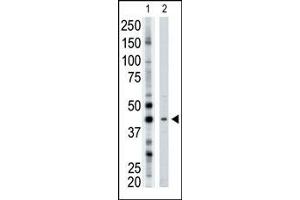 This ART3 antibody is generated from rabbits immunized with a KLH conjugated synthetic peptide between 12-42 amino acids from the N-terminal region of human ART3.