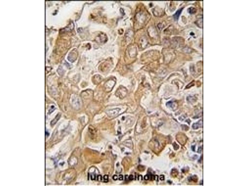 This LECT1 antibody is generated from rabbits immunized with a KLH conjugated synthetic peptide between 253-281 amino acids from the C-terminal region of human LECT1.