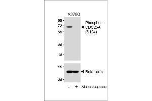 This CDC25A Antibody is generated from rabbits immunized with a KLH conjugated synthetic phosphopeptide corresponding to amino acid residues surrounding S124 of human CDC25A.