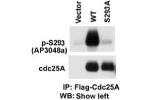 This CDC25A Antibody is generated from rabbits immunized with a KLH conjugated synthetic phosphopeptide corresponding to amino acid residues surrounding S293 of human CDC25A.