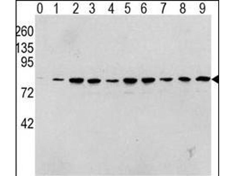 Raf-1 is a MAP kinase kinase kinase (MAP3K) which functions downstream of the Ras family of membrane associated GTPases to which it binds directly. Once activated Raf-1 can phosphorylate to activate the dual specificity protein kinases MEK1 and MEK2 which in turn phosphorylate to activate the serine/threonine specific protein kinases ERK1 and ERK2. Activated ERKs are pleiotropic effectors of cell physiology and play an important role in the control of gene expression involved in the cell division cycle, apoptosis, cell differentiation and cell migration.