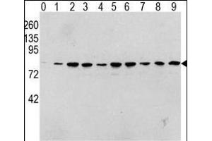 This RAF1 Antibody is generated from rabbits immunized with a KLH conjugated synthetic phosphopeptide corresponding to amino acid residues surrounding S338 of human RAF1.