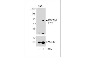 This MAP4K1 Antibody is generated from rabbits immunized with a KLH conjugated synthetic phosphopeptide corresponding to amino acid residues surrounding S171 of human MAP4K1.
