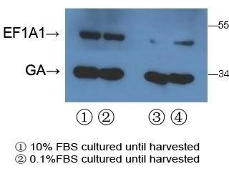 EEF1A1 is an isoform of the alpha subunit of the elongation factor-1 complex, which is responsible for the enzymatic delivery of aminoacyl tRNAs to the ribosome. This isoform (alpha 1) is expressed in brain, placenta, lung, liver, kidney, and pancreas, and the other isoform (alpha 2) is expressed in brain, heart and skeletal muscle. This isoform is identified as an autoantigen in 66 % of patients with Felty syndrome.