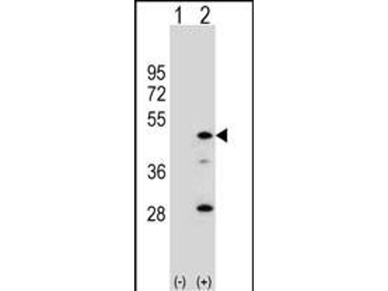 This AADAC antibody is generated from rabbits immunized with a KLH conjugated synthetic peptide between 273-300 amino acids from the C-terminal region of human AADAC.