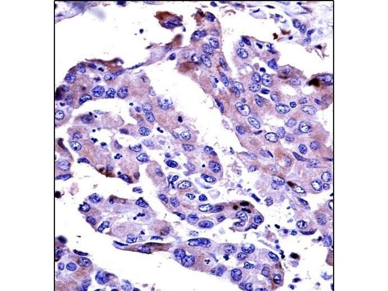 AKT2 is a putative oncogenic protein belonging to a subfamily of serine/threonine kinases containing SH2-like (Src homology 2-like) domains. Furthermore, AKT2 was shown to be amplified and overexpressed in 2 of 8 ovarian carcinoma cell lines and 2 of 15 primary ovarian tumors. Overexpression of AKT2 contributes to the malignant phenotype of a subset of human ductal pancreatic cancers. AKT2 is a general protein kinase capable of phophorylating several known proteins.