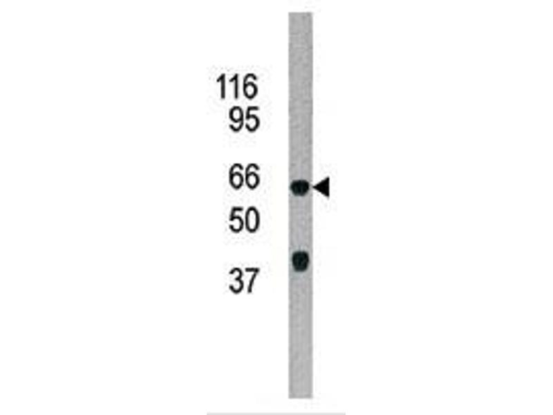 This ADCK5 antibody is generated from rabbits immunized with a KLH conjugated synthetic peptide between 434-464 amino acids from the C-terminal region of human ADCK5.
