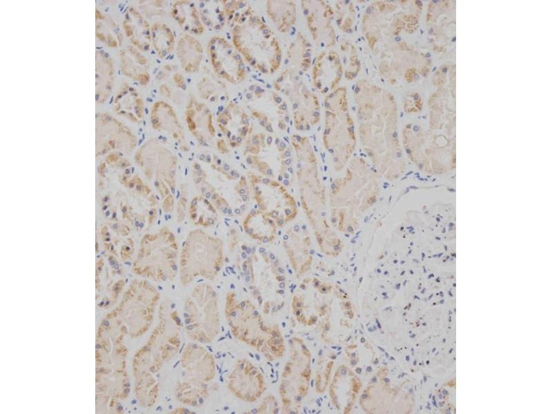 This SPHK2 antibody is generated from rabbits immunized with a KLH conjugated synthetic peptide between 590-620 amino acids from the C-terminal region of human SPHK2.