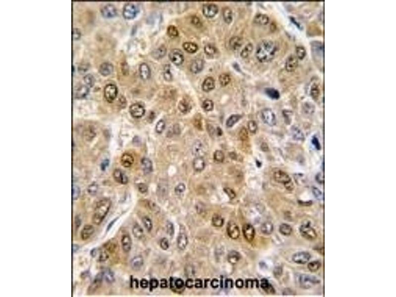 This DDX5 antibody is generated from rabbits immunized with a KLH conjugated synthetic peptide between 491-518 amino acids from the C-terminal region of human DDX5.