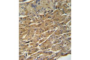 This GPT antibody is generated from rabbits immunized with a KLH conjugated synthetic peptide between 86-112 amino acids from the N-terminal region of human GPT.