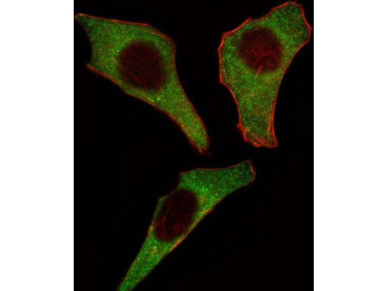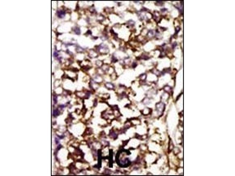 This CDK4 antibody is generated from rabbits immunized with a KLH conjugated synthetic peptide between 273-305 amino acids from the C-terminal region of human CDK4.