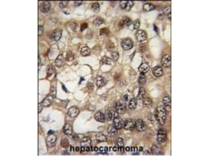 HIPK2, a member of the KIPK subfamily of Ser/Thr protein kinases, phosphorylates homeodomain transcription factors and may play a role as a corepressor for homeodomain transcription factors. This nuclear protein has been shown to interact with TRADD. It is highly expressed in neuronal tissues, heart and kidney, and weakly expressed in a ubiquitous way. HIPK2 is a target for sumoylation, and when conjugated it is directed to nuclear speckles.