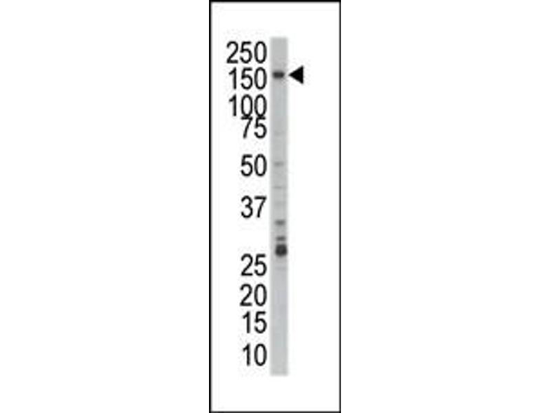 This PRP4 antibody is generated from rabbits immunized with a KLH conjugated synthetic peptide between 948-978 amino acids from the C-terminal region of human PRP4.