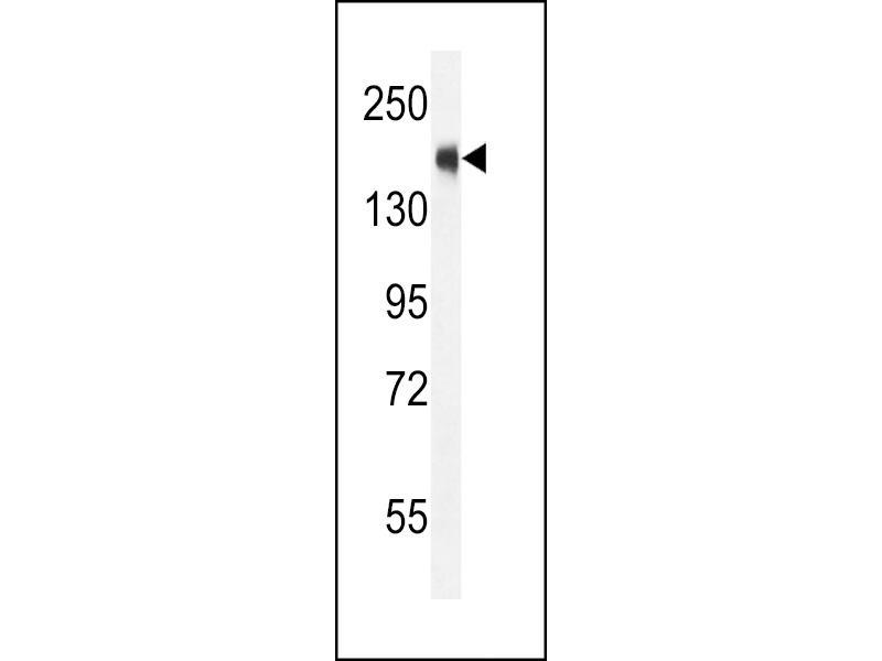 This SRC1 antibody is generated from rabbits immunized with a KLH conjugated synthetic peptide between 1338-1367 amino acids from the C-terminal region of human SRC1.