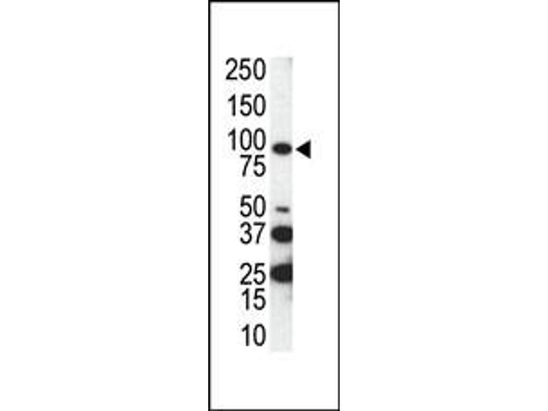 This AXL antibody is generated from rabbits immunized with a KLH conjugated synthetic peptide between 863-894 amino acids from the C-terminal region of human AXL.