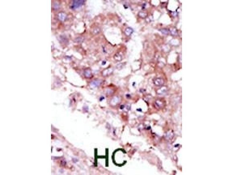 This STK33 antibody is generated from rabbits immunized with a KLH conjugated synthetic peptide between 476-506 amino acids from the C-terminal region of human STK33.