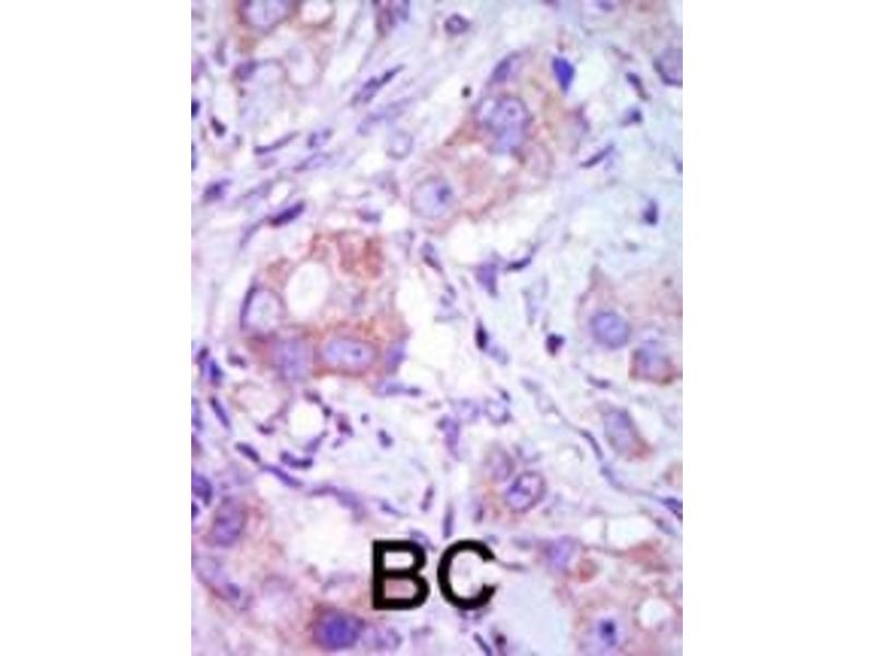 This MLK1 antibody is generated from rabbits immunized with a KLH conjugated synthetic peptide between 1070-1104 amino acids from the C-terminal region of human MLK1.