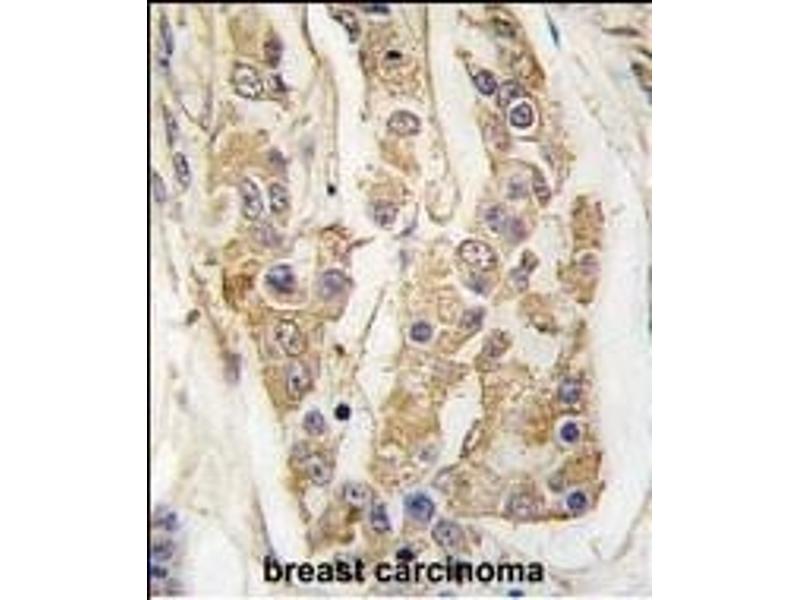 This COT (MAP3K8/MEKK8) antibody is generated from rabbits immunized with a KLH conjugated synthetic peptide between 368-397 amino acids from the C-terminal region of human COT (MAP3K8/MEKK8).