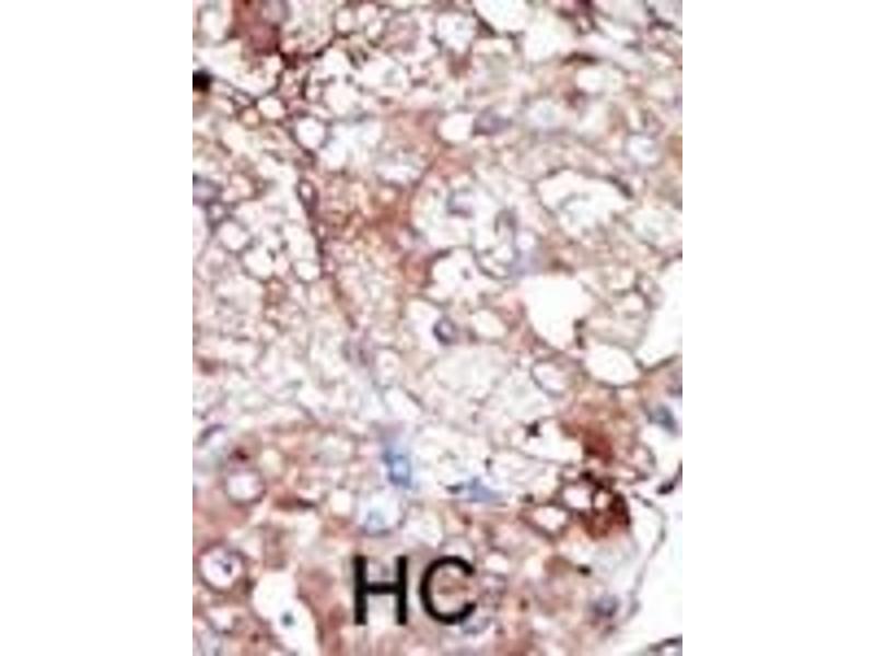 This GAK antibody is generated from rabbits immunized with a KLH conjugated synthetic peptide between 1140-1170 amino acids from the C-terminal region of human GAK.