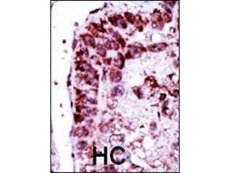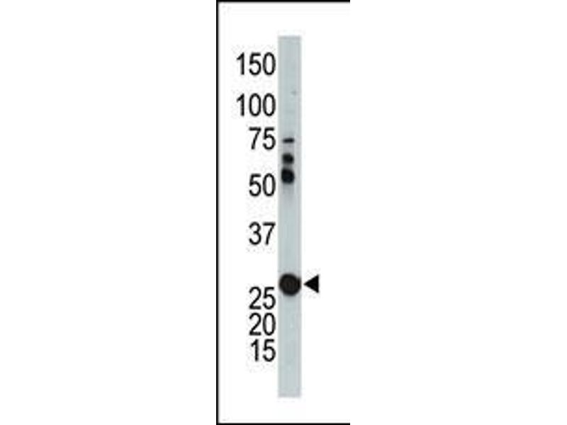 This AK2 antibody is generated from rabbits immunized with a KLH conjugated synthetic peptide between 1-30 amino acids from the N-terminal region of human AK2.