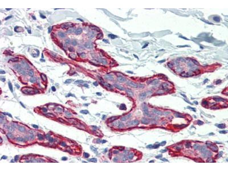 Usage: Immunohistochemistry: This antibody was validated for use in immunohistochemistry on a panel of 21 formalin-fixed, paraffin-embedded (FFPE) human tissues after heat induced antigen retrieval in pH 6.0 citrate buffer. After incubation with the primary antibody, slides were incubated with biotinylated secondary antibody, followed by alkaline phosphatase-streptavidin and chromogen. The stained slides were evaluated by a pathologist to confirm staining specificity. The optimal working concentration for this antibody was determined to be 5 μg/mL. -