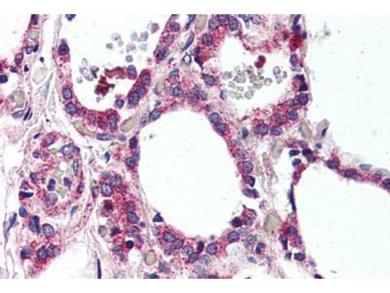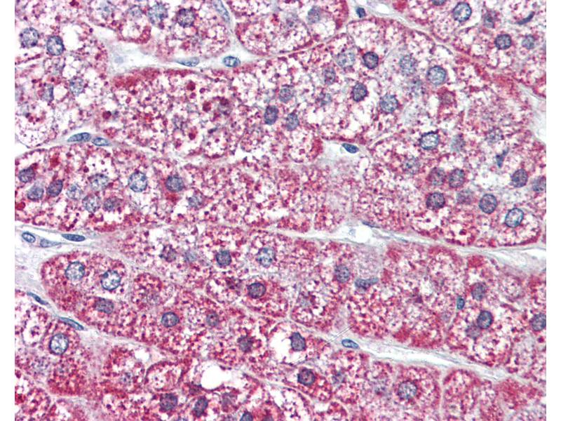 Usage: Immunohistochemistry: This antibody was validated for use in immunohistochemistry on a panel of 21 formalin-fixed, paraffin-embedded (FFPE) human tissues after proteinase K antigen retrieval. After incubation with the primary antibody, slides were incubated with biotinylated secondary antibody, followed by alkaline phosphatase-streptavidin and chromogen. The stained slides were evaluated by a pathologist to confirm staining specificity. The optimal working concentration for this antibody was determined to be 10 μg/mL. -