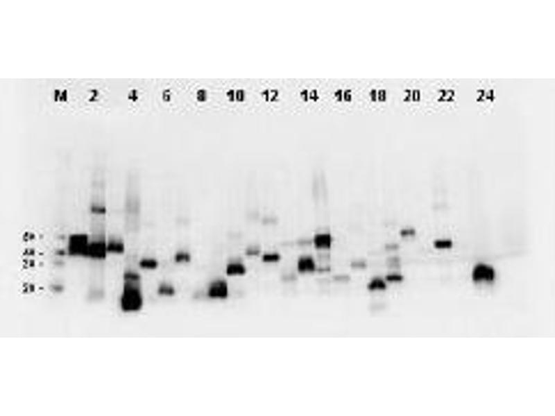 This antibody is optimally suited for monitoring the expression of DYKDDDDK tagged fusionproteins. As such, this antibody can be used to identify fusion proteins containing theDYKDDDDK epitope. The antibody recognizes the epitope tag fused to either the amino- orcarboxy- termini of targeted proteins. The epitope tag peptide sequence was first derivedfrom the 11-amino-acid leader peptide of the gene-10 product from bacteriophage T7. DYKDDDDK is the most commonly used hydrophilic octapeptide tag. Recommended Dilutions: