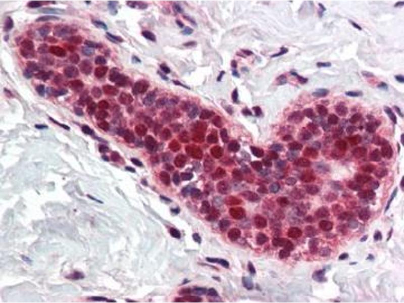 The proliferating cell nuclear antigen (PCNA) is an auxiliary protein of DNA polymerase delta and is involved in the control of eukaryotic DNA replication by increasing the processibility of DNA polymerase during elongation of the leading strand. PCNA is expressed in the nucleus of all proliferating cells and is pivotal for DNA synthesis and cell cycle progression. In response to DNA damage, PCNA is mono-ubiquitinated and is involved in mismatch-provoked excision. PCNA is a useful marker for DNA synthesis and is highly conserved among most species.Synonyms: Cyclin, Proliferating Cell Nuclear Antigen