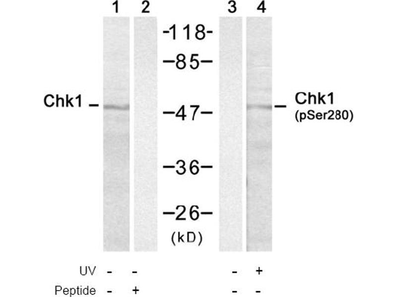 This antibody detects endogenous levels of Chk1 only when phosphorylated at Serine 280.