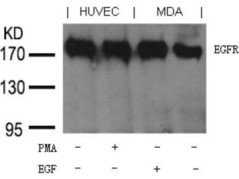 - EGFR goat polyclonal antibody detects endogenous levels of total EGFR protein.