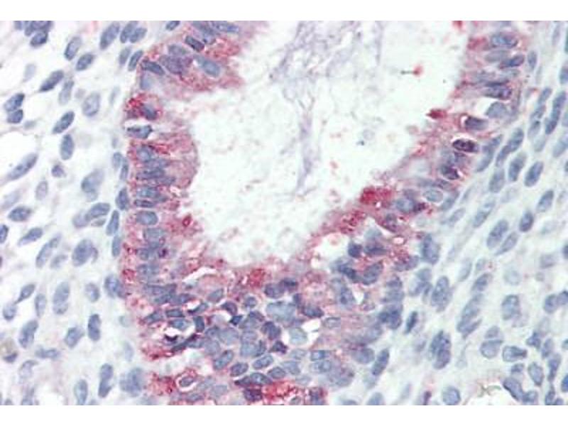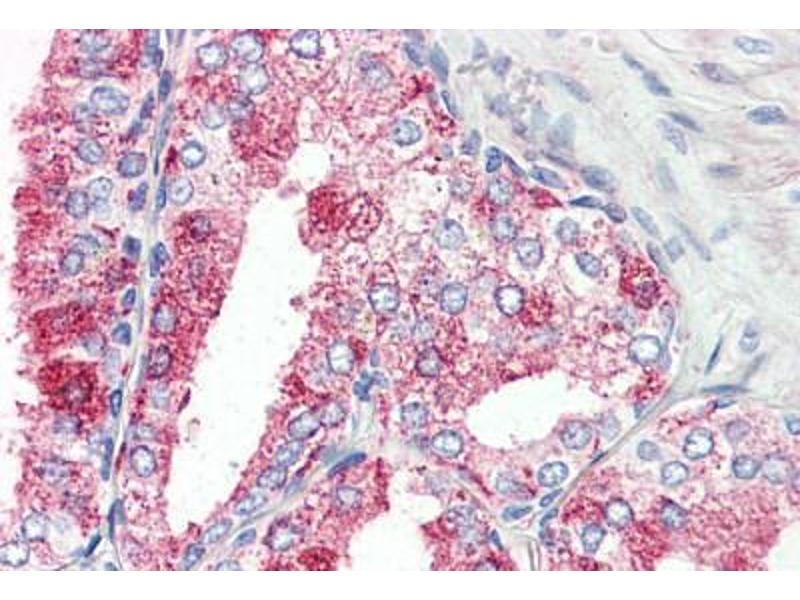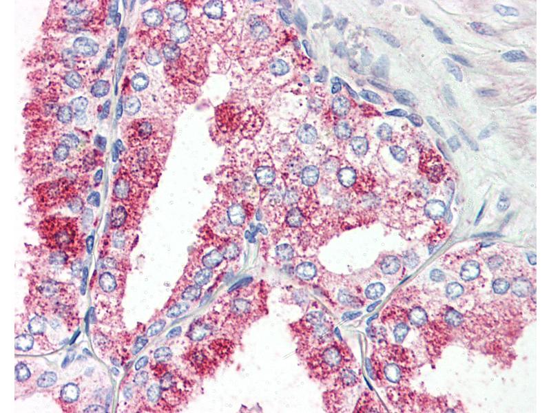 Usage: Immunohistochemistry: This antibody was validated for use in immunohistochemistry on a panel of 21 formalin-fixed, paraffin-embedded (FFPE) human tissues after proteinase K antigen retrieval. After incubation with the primary antibody, slides were incubated with biotinylated secondary antibody, followed by alkaline phosphatase-streptavidin and chromogen. The stained slides were evaluated by a pathologist to confirm staining specificity. The optimal working concentration for this antibody was determined to be 10 μg/mL. -