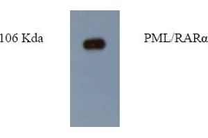Western Blot: Use PML antibody at 1/2,000 dilution to differentiate normal PML andChimeric PML/RAR alpha molecules based on their molecular weight.