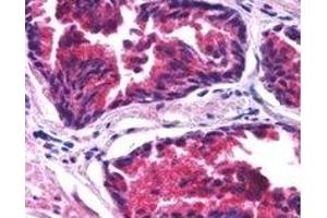 Peptide ELISA: Antibody Detection Limit Dilution: 1/32000. Western Blot: Preliminary experiments gave an approx 35 kDa band in human brain(hippocampus) lysates after 1 μg/mL antibody staining. Please note that currently wecannot find an explanation in the literature for the band we observe given the calculatedsize of 125 kDa according to NP_443180.2. The 35 kDa band was successfully blocked byincubation with the immunizing peptide. Immunohistochemistry: 1.25 μg/mL. In paraffin embedded Human Prostate shows cytoplasm staining of secretory cells in theglands. Other applications not tested. Optimal dilutions are dependent on conditions and should be determined by the user.